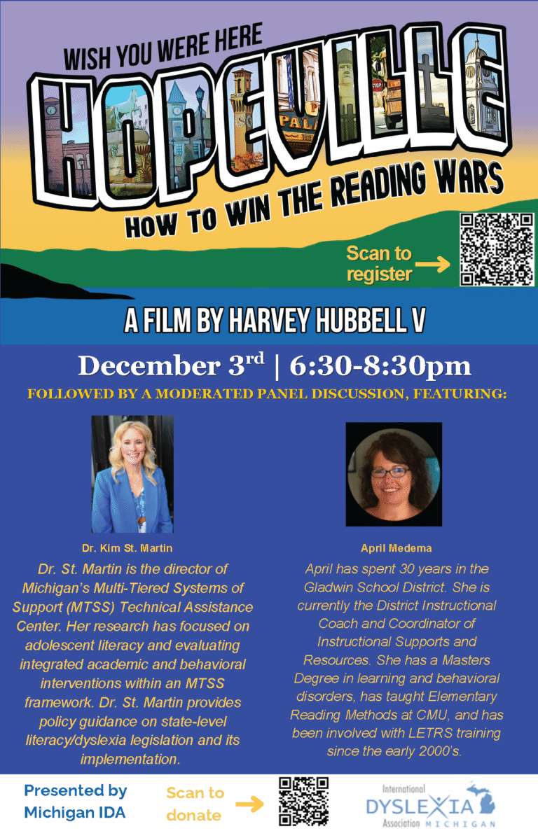 The Michigan Branch of the International Dyslexia Association was founded in 1976 by Sister Anna Cryan of Nazareth College in Kalamazoo, MI, who sought training after struggling to teach reading to two children in the mid-1960s. Since then, the branch has sponsored conferences, served as a resource for information about dyslexia, recognized achievements, and offered support for dyslexic students and families in Michigan.